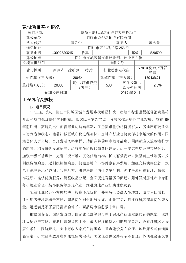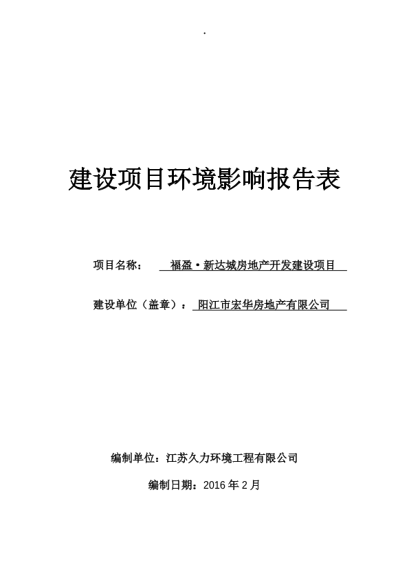 3、关于阳江市宏华房地产有限公司福盈·新达城房地产开发建设项目环境影响报告表