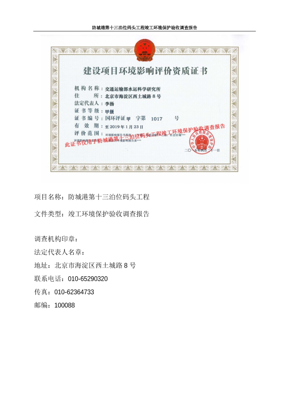 防城港第十三泊位码头建设项目竣工环境保护验收517091351.pdf