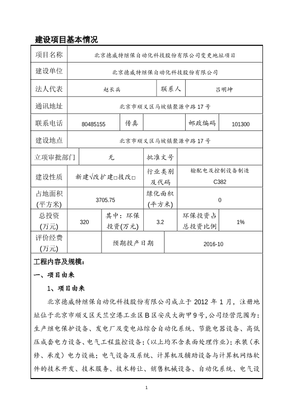 北京德威特继保自动化科技股份有限公司变更地址项目a75511a2546
