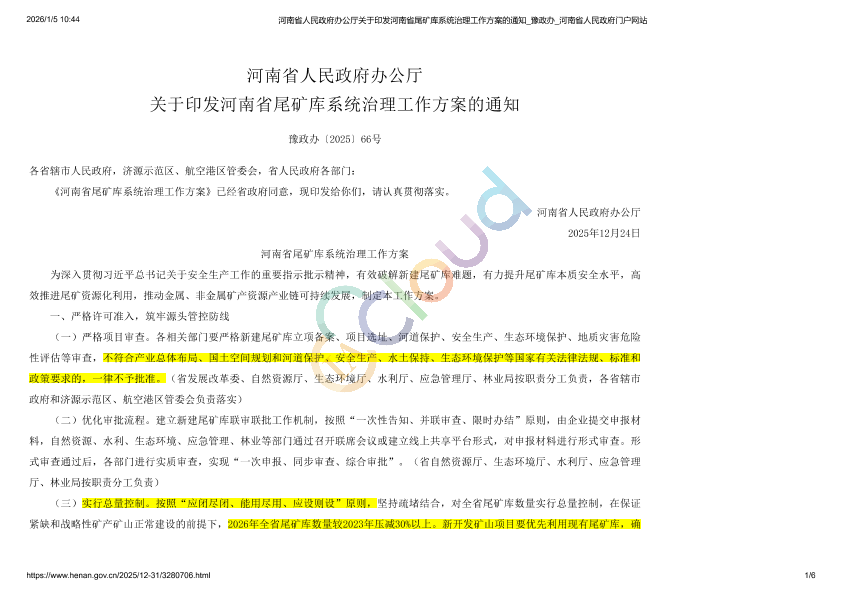 河南省人民政府办公厅关于印发河南省尾矿库系统治理工作方案的通知.pdf