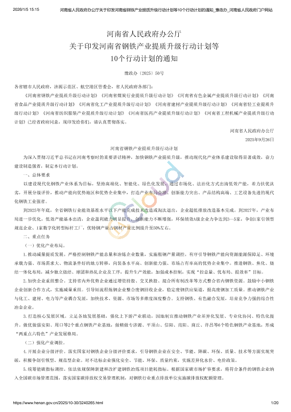 河南省人民政府办公厅关于印发河南省钢铁产业提质升级行动计划等10个行动计划的通知.pdf