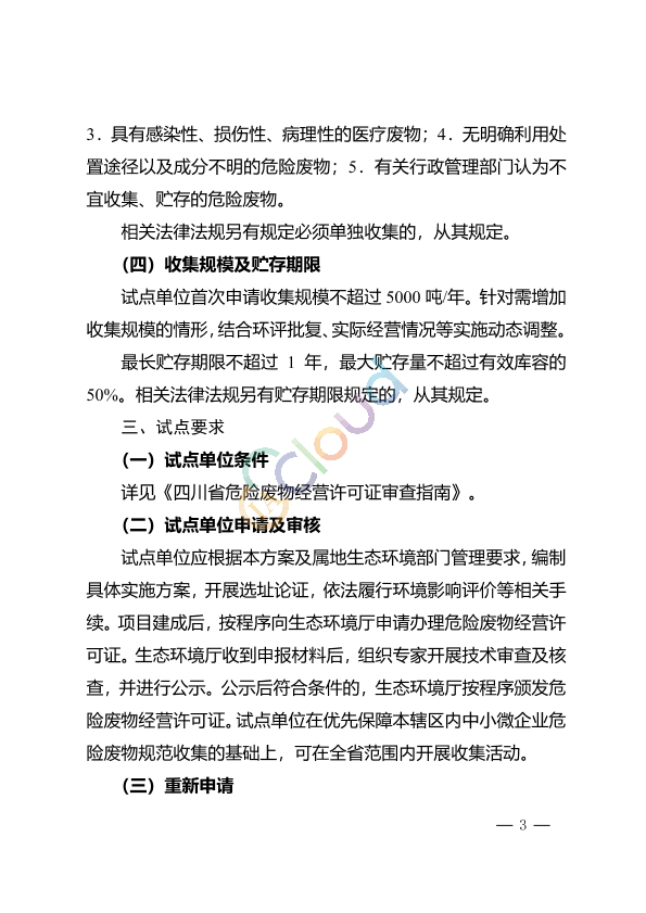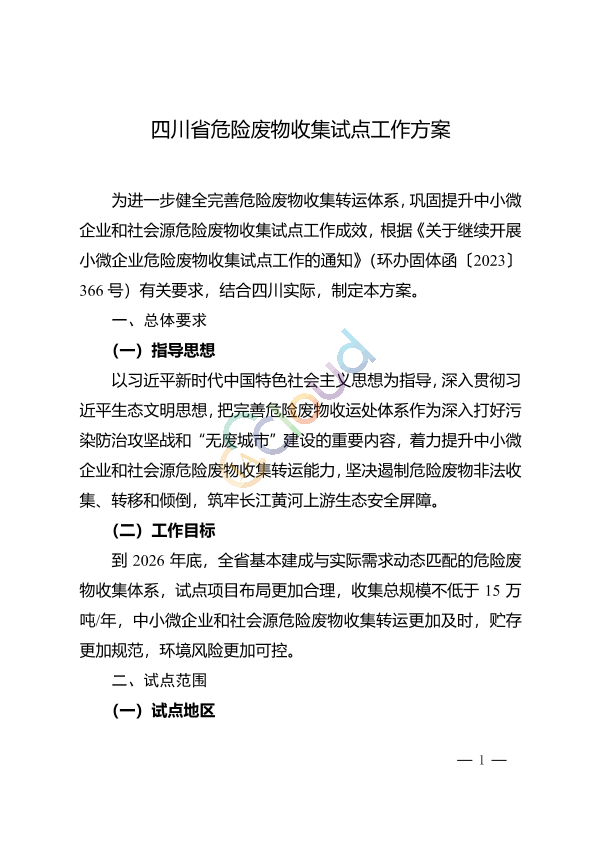 1、四川省危险废物收集试点工作方案 川环规〔2024〕3号