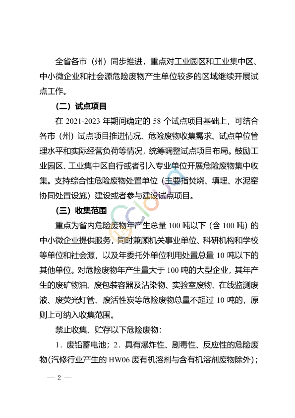 2、四川省危险废物集中收集贮存试点工作方案 川环发〔2021〕9号