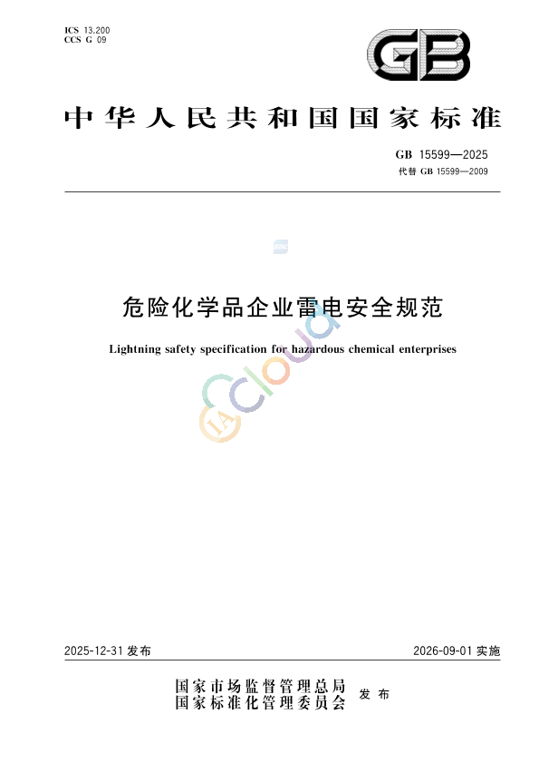 GB 15599-2025 危险化学品企业雷电安全规范