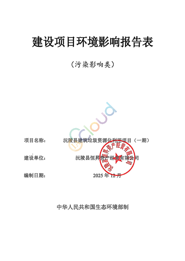 沅陵县建筑垃圾资源化利用项目(一期) 公开