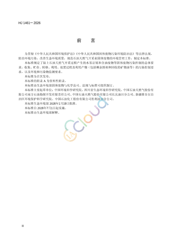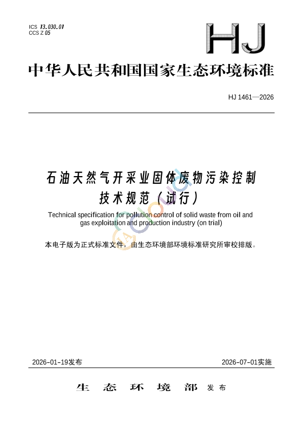 石油天然气开采业固体废物污染控制技术规范(试行)(HJ 1461-2026).pdf