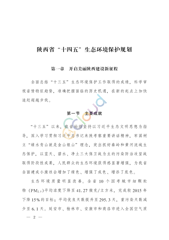 陕西省“十四五”生态环境保护规划