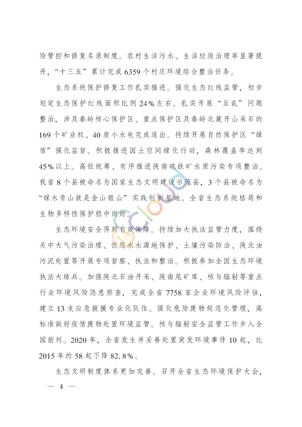 4、陕西省“十四五”生态环境保护规划 陕政办发〔2021〕25号