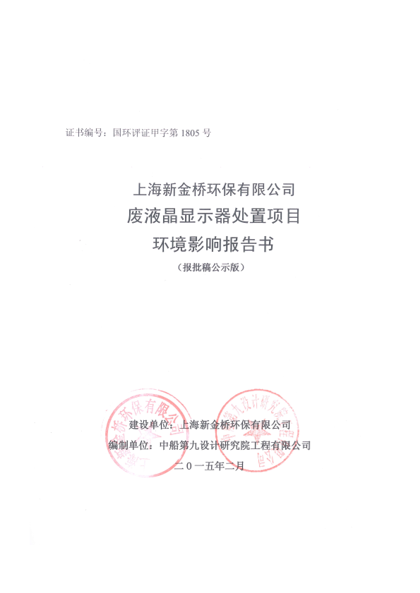 1、上海新金桥环保有限公司废液晶显示器处置项目环境影响评价报批前公示3856