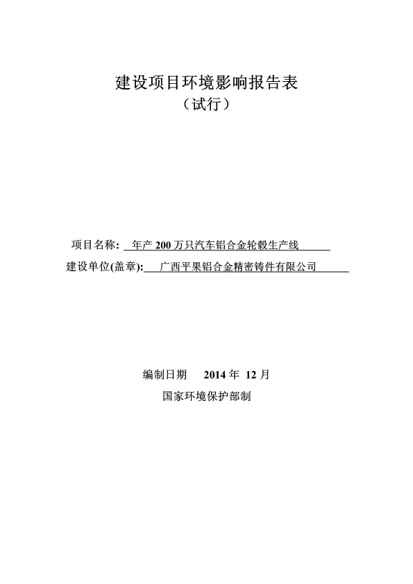 5、1柳州一阳科技有限公司年产200万只铝合金轮毂项目环境影响报告书审批
