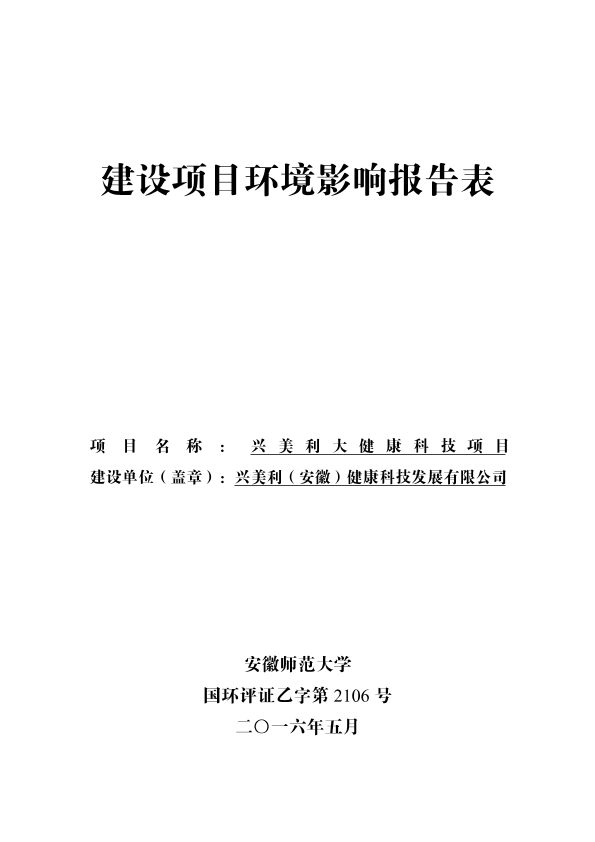 《兴美利(安徽)健康科技发展有限公司兴美利大健康科技项目环境影响报告表》受理公示a33701a5869.pdf