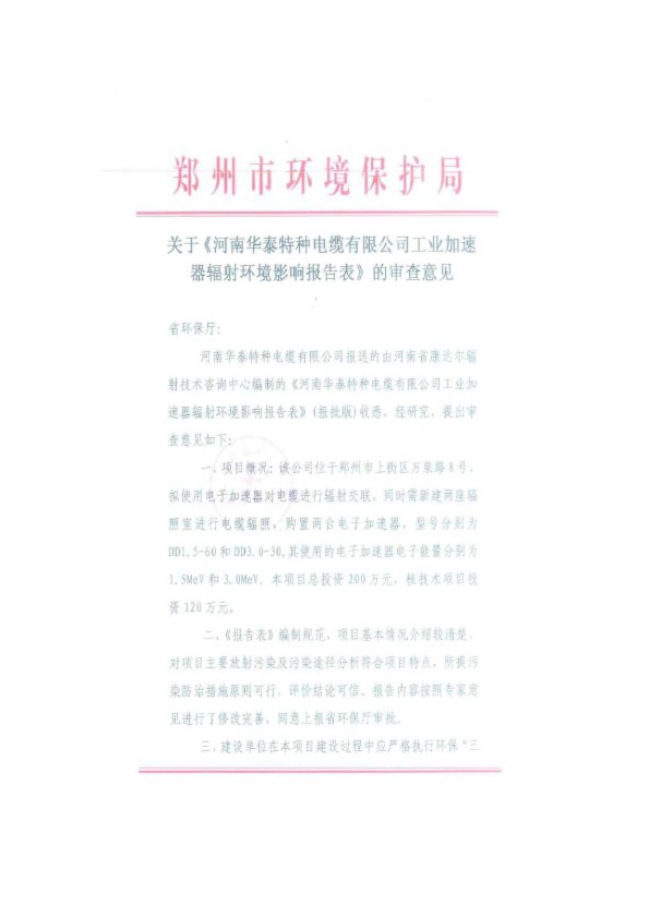 1、河南华泰特种电缆有限公司辐射环境影响报告表市局审查意见及选址意见(1)7430