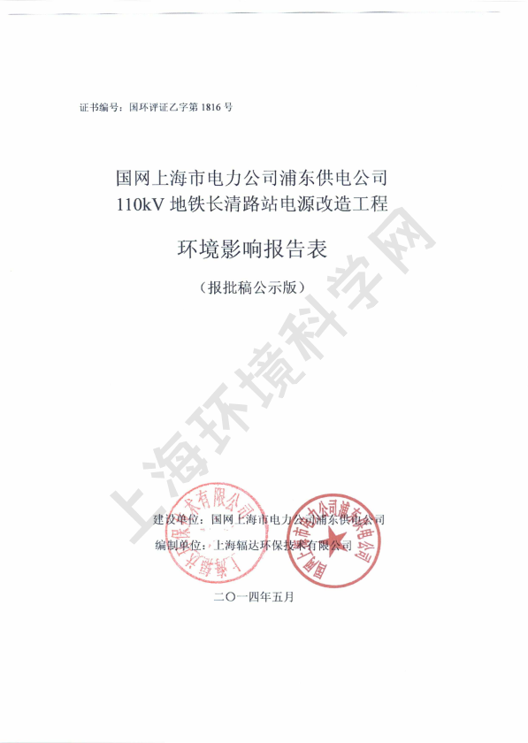 4、110kV地铁张杨站电源改造工程环境影响评价8464