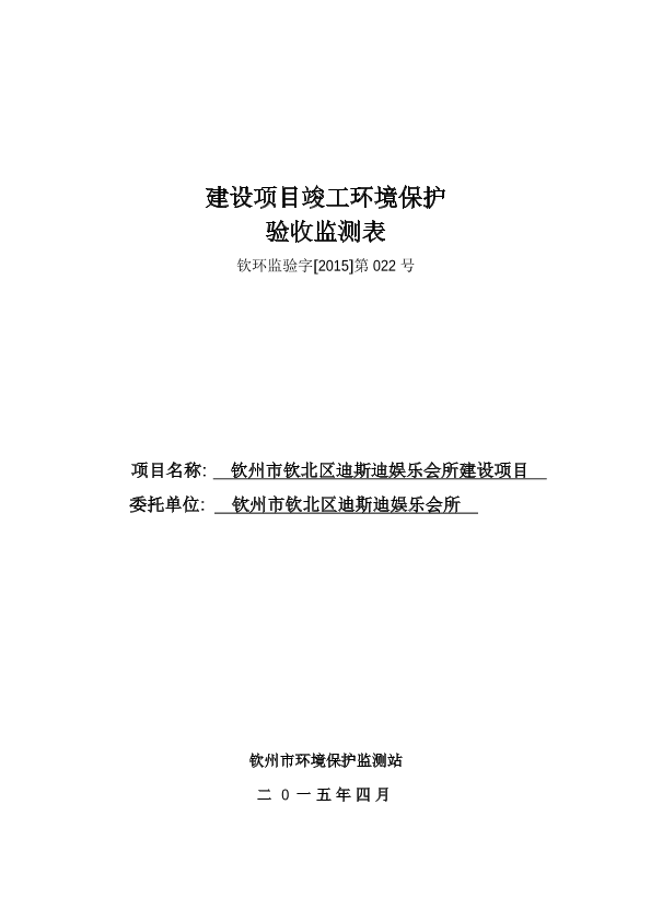 钦州市钦北区迪斯迪娱乐会所建设项目
