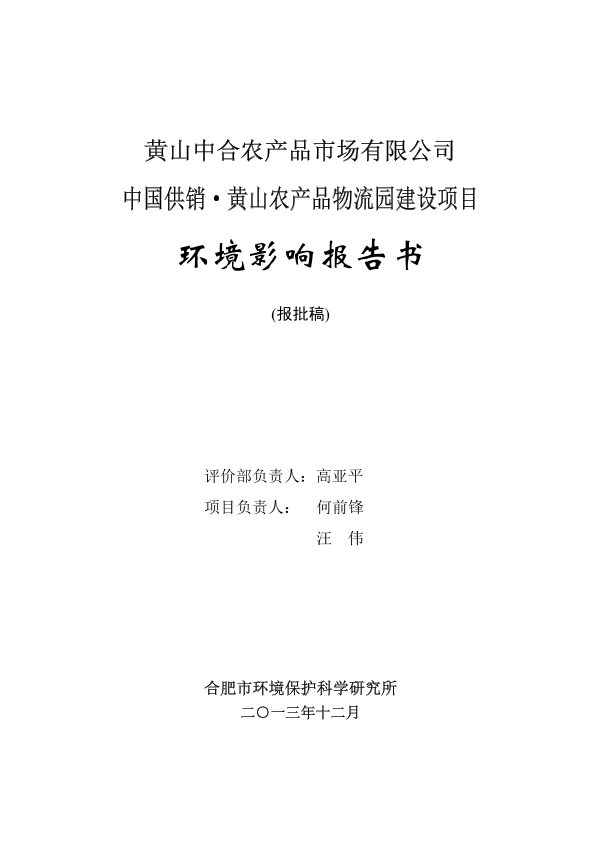 黄山市 社会区域 140108 黄山中合农产品市场有限公司中国供销•黄山农产品物流园建设项目环境影响报告书全本公示更多86605433006.pdf