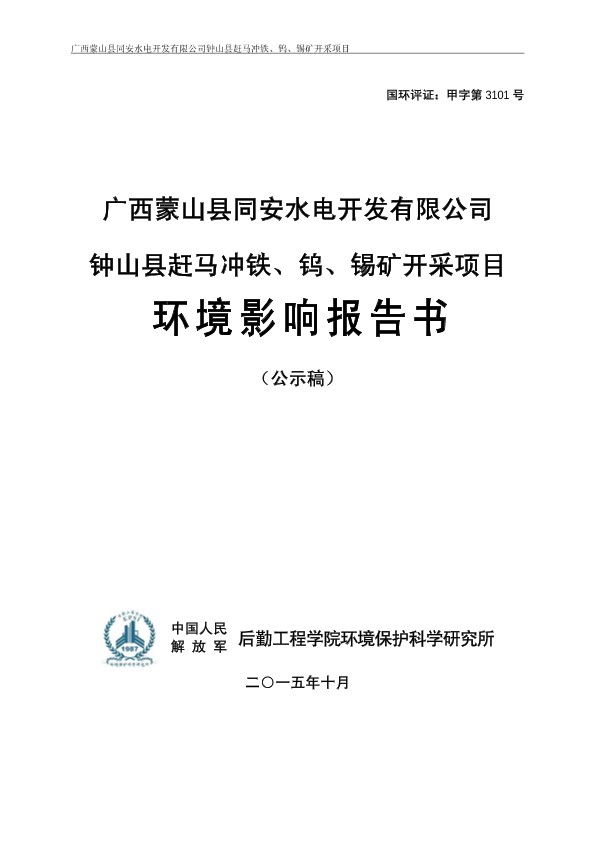 广西蒙山县同安水电开发有限公司钟山县赶马冲铁、钨、锡矿开采项目环境影响报告书审批467983617