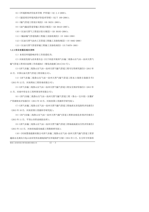 1、河南慧基能源有限公司西气东输二线鲁山压气站-汝州天然气输气管道工程