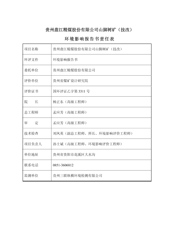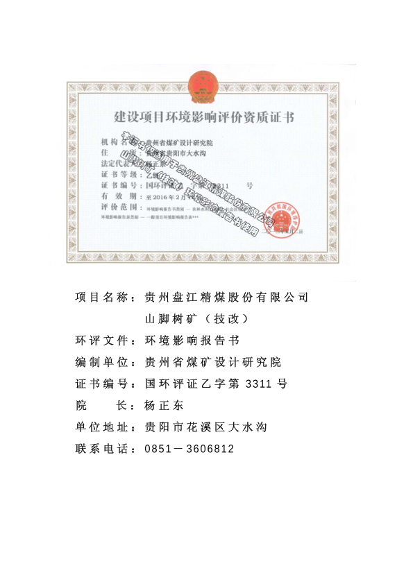 1、贵州盘江精煤股份有限公司山脚树煤矿整合工程