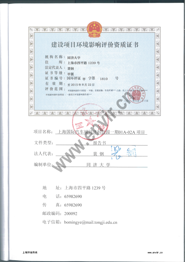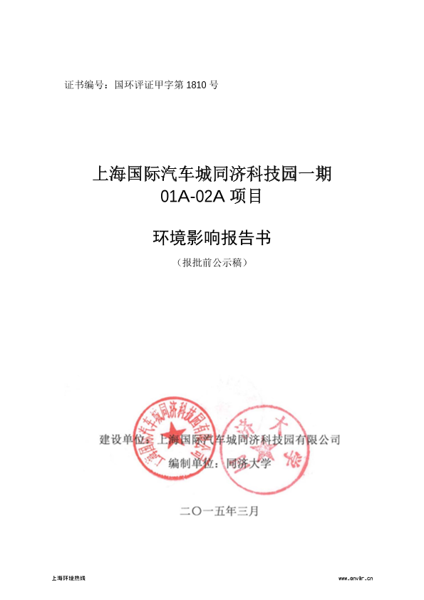 上海国际汽车城同济科技园一期01A-02A项目环境影响评价报批前公示1326