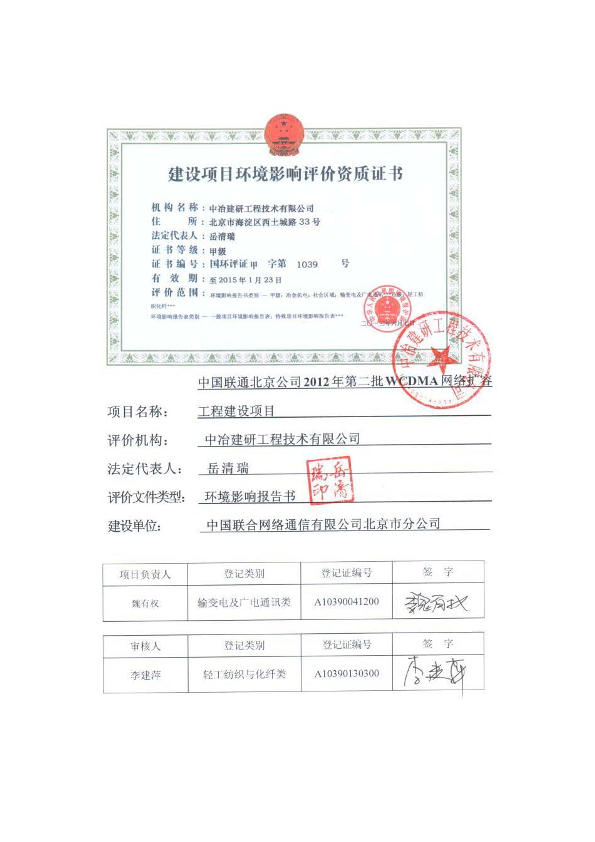 中国联通北京公司2012年第二批wcdma网络扩容工程建设项目