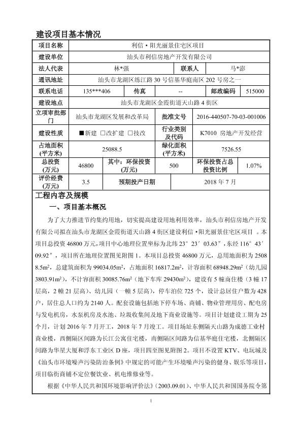 1、1 阳光丽景住宅小区二期项目环境影响报告书审批
