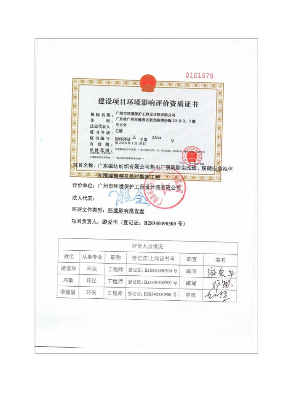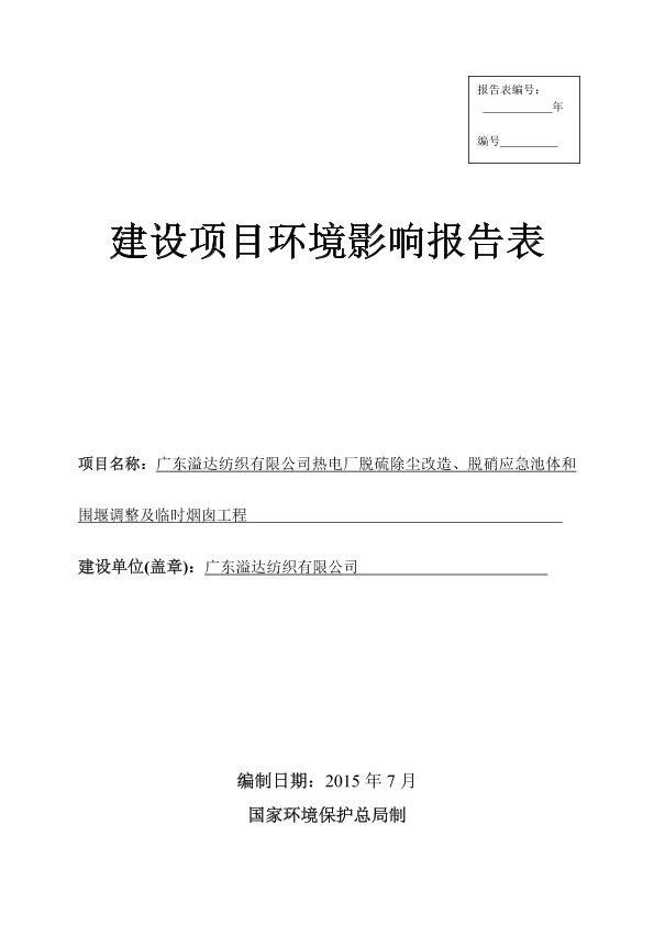 广东溢达纺织有限公司热电厂脱硫除尘改造、脱硝应急池体和围堰调整及临时烟囱工程环境影响报告表 公开