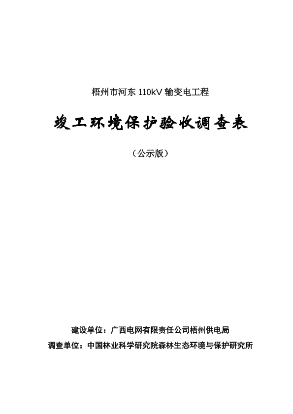 广西电网有限责任公司梧州供电局梧州市河东110kv输变电工程建设项目竣工环保验收_779032.pdf