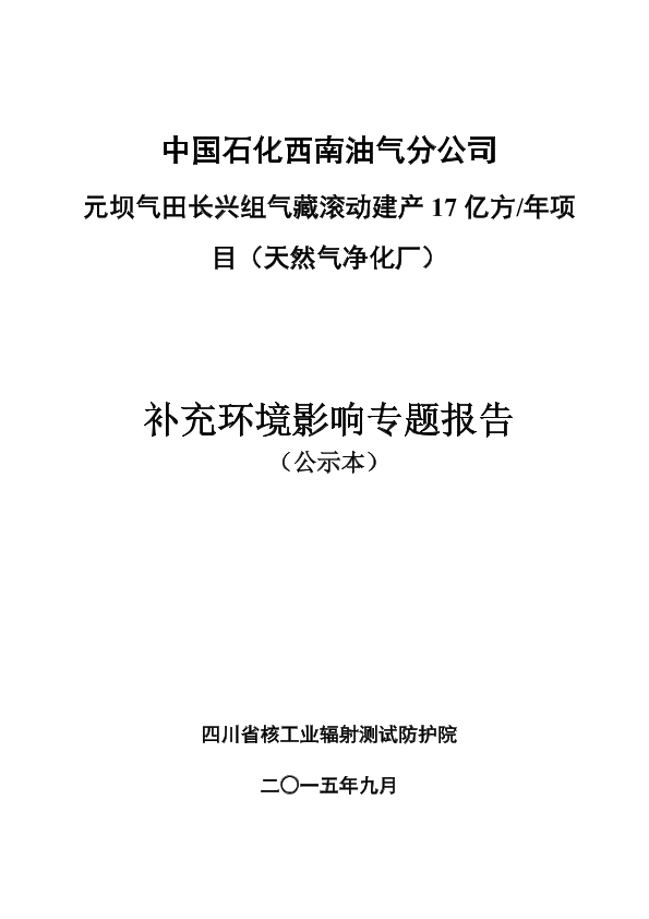 4、中国石油化工股份有限公司西南油气分公司元坝气田开发建设项目部-元坝气田长兴组气藏滚动建产17亿方_年项目