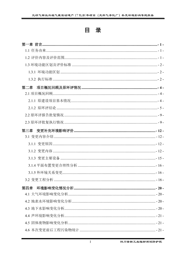 1、元坝气田长兴组气藏滚动建产17亿方年项目(采输工程)方案变更4801