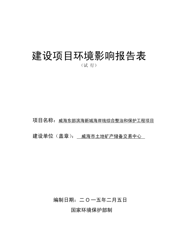 威海市环境保护局经区分局关于威海东部滨海新城海岸线综合整治和保护工程项目环境影响评价报告表受理情况的公示_1225974.pdf