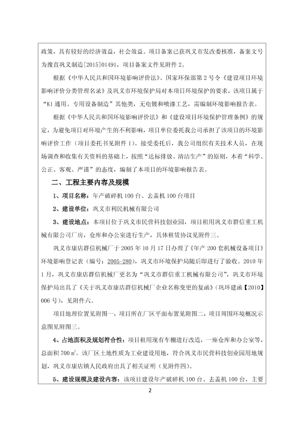 2、大峪沟镇杨里村-年产20套破碎机项目报告表3100