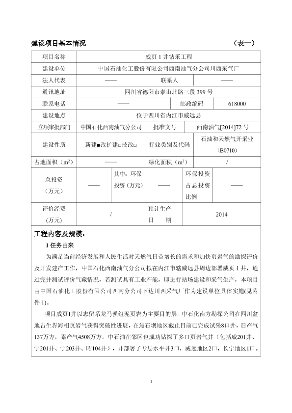 1、中石化西南油气分公司川西采气厂威页1井钻采工程