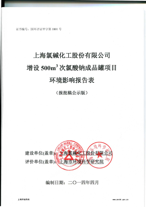 1、上海氯碱化工股份有限公司增设次氯酸钠成品分装项目3023