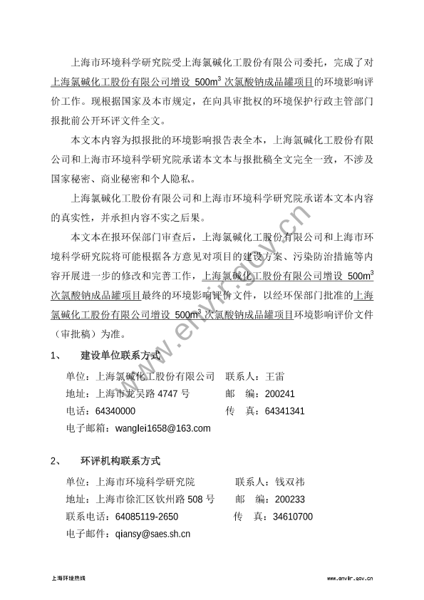 3、上海氯碱化工股份有限公司4万吨年高性能氯化聚氯乙烯项目环境影响评价报批前公示3023