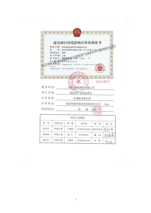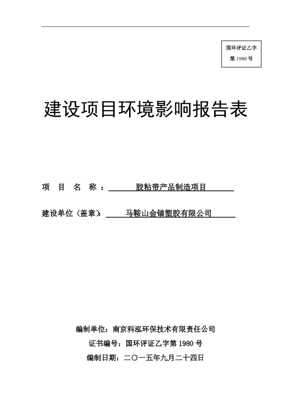 《马鞍山金锚塑胶有限公司胶粘带产品制造项目环境影响报告表》受理公示a46468a4434 公开