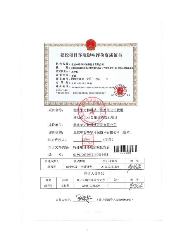 1、北京亚力特科技开发有限公司使用移动式X射线探伤机4904