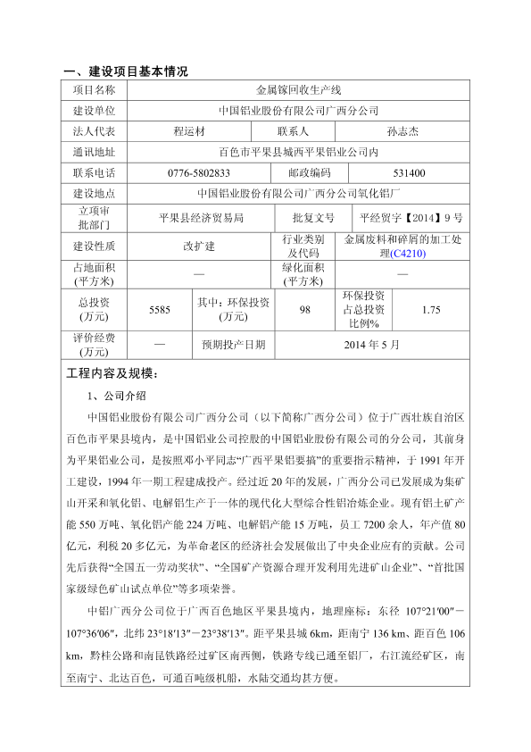 1、次氧化锌回收生产线改扩建项目审批受理公示