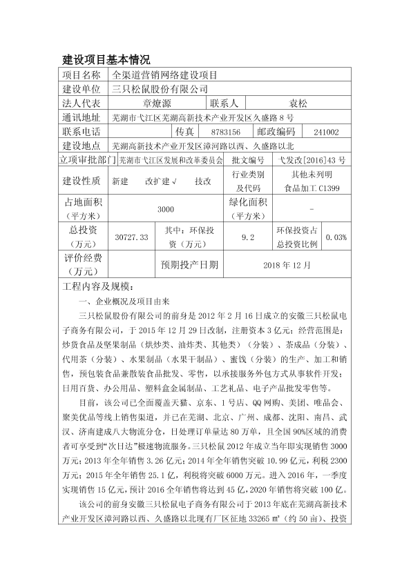 三只松鼠股份有限公司全渠道营销网络建设项目环境影响报告表公示957575039.pdf