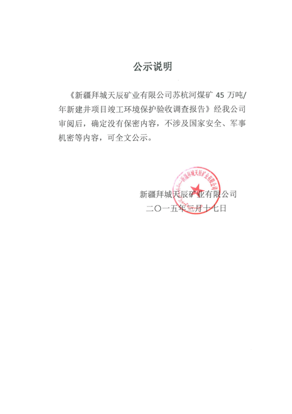 新疆拜城天辰矿业有限公司苏杭河煤矿新建工程