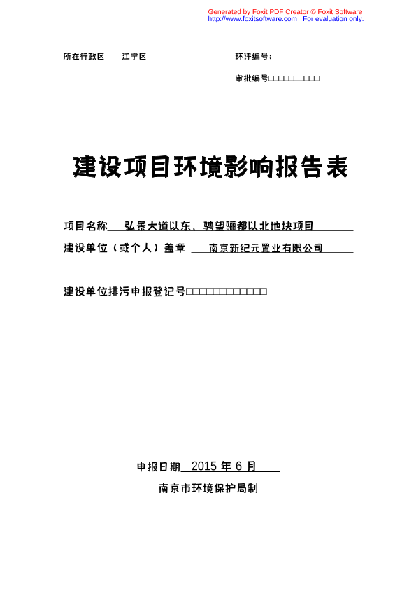 南京新纪元置业有限公司弘景大道以东、骋望骊都以北地块项目环境影响报告表全本公示_97161.pdf