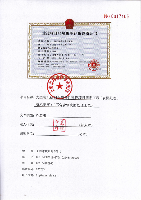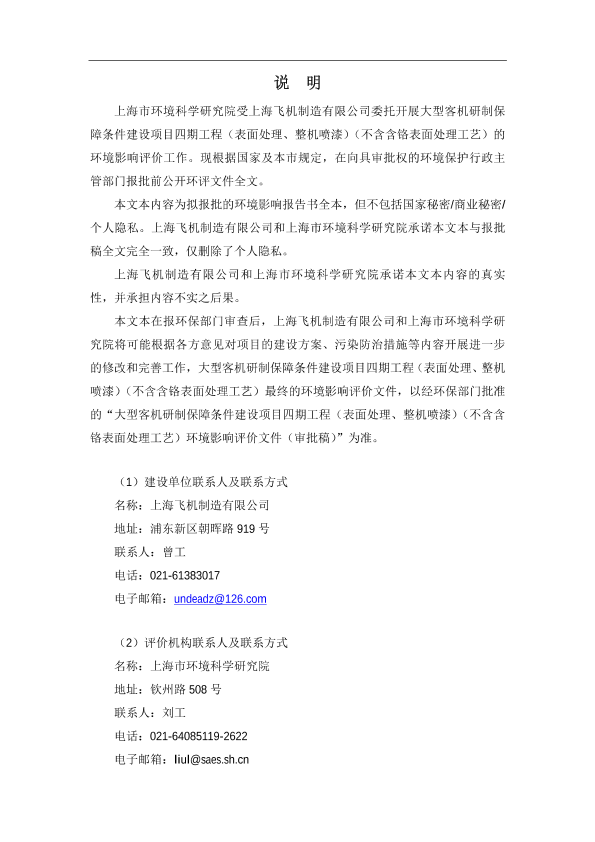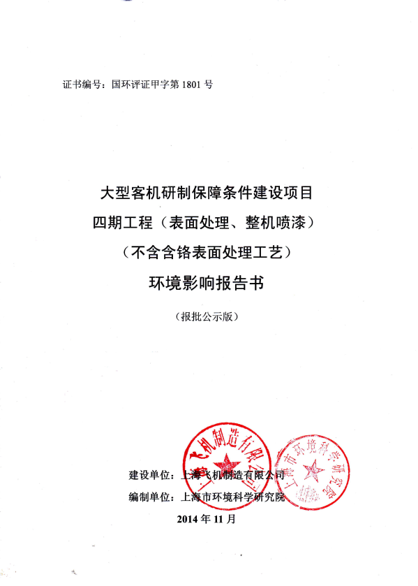 1、大型客机研制保障条件建设项目四期工程(表面处理、整机喷漆)环境影响评价报批前公示8014