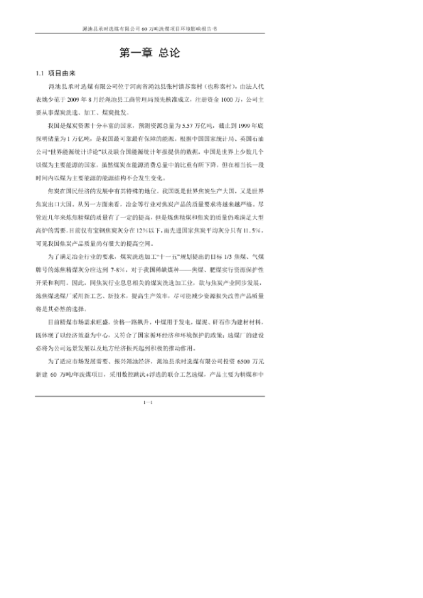 渑池县张村镇-渑池县承时选煤有限公司60万吨洗煤项目报告书(1)2797