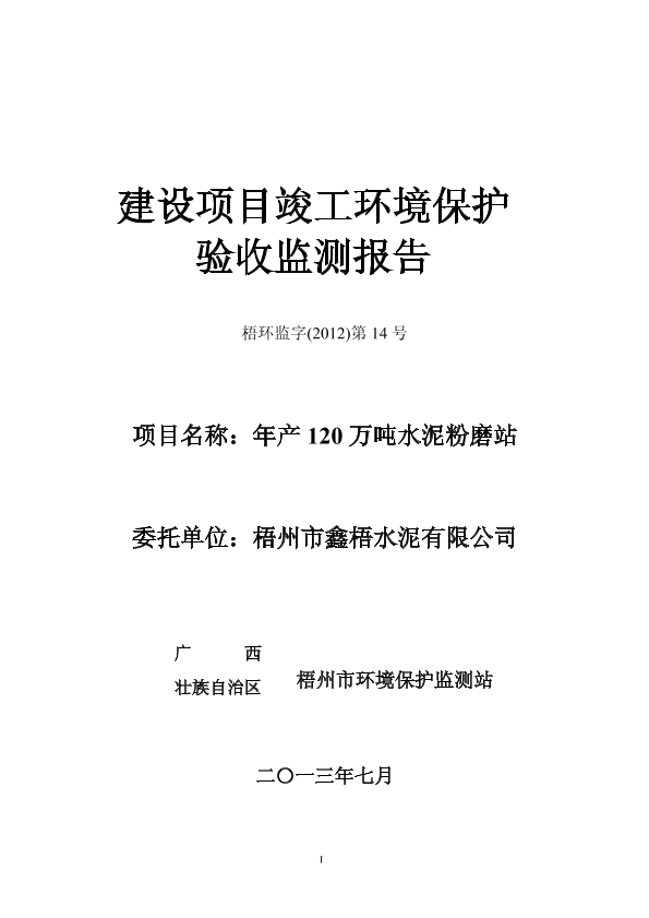 梧州市鑫梧水泥有限公司年产120万吨水泥粉磨站建设项目竣工环保验收_777598.pdf