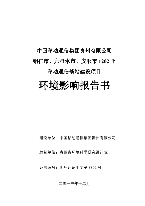 铜仁市、六盘水市、安顺市1202个移动通信基站建设项目_47589.pdf