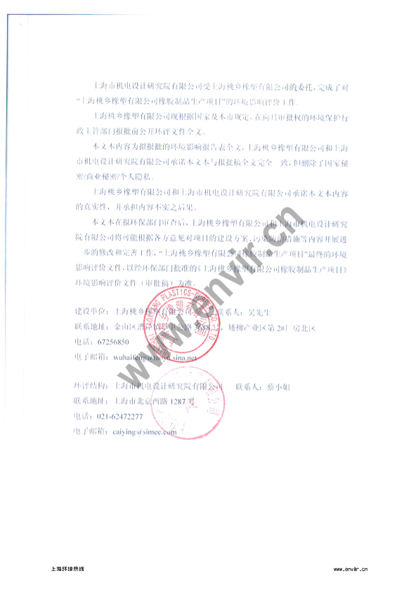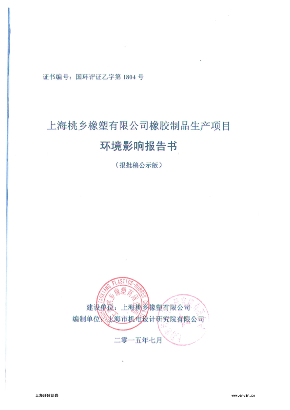 上海桃乡橡塑有限公司橡胶制品生产项目环境影响评价报批前公示3355