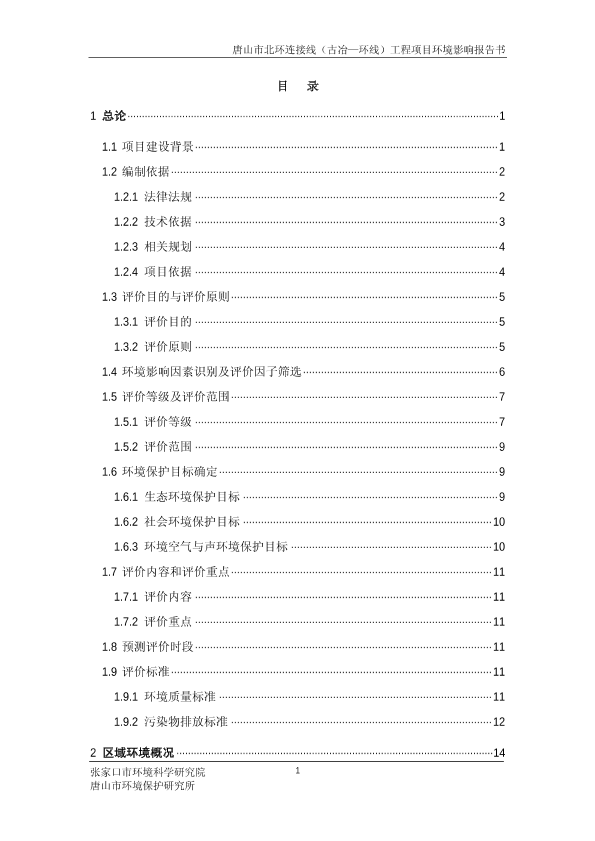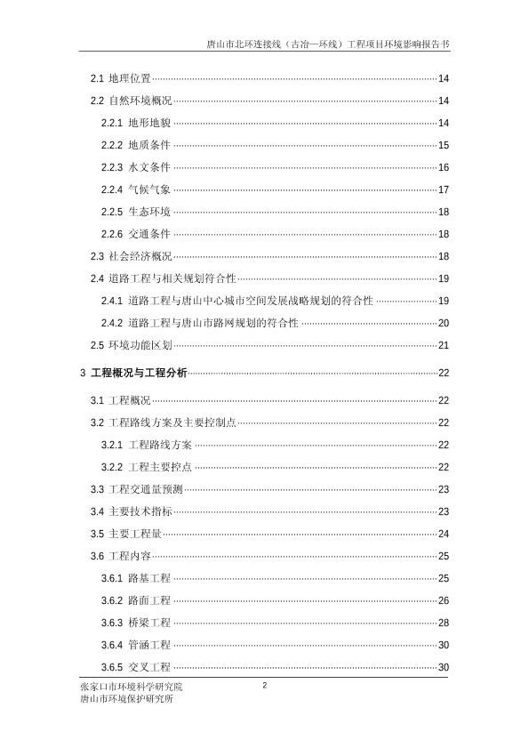 1、唐山市中心城区环线(二环路)工程项目环境影响报告书