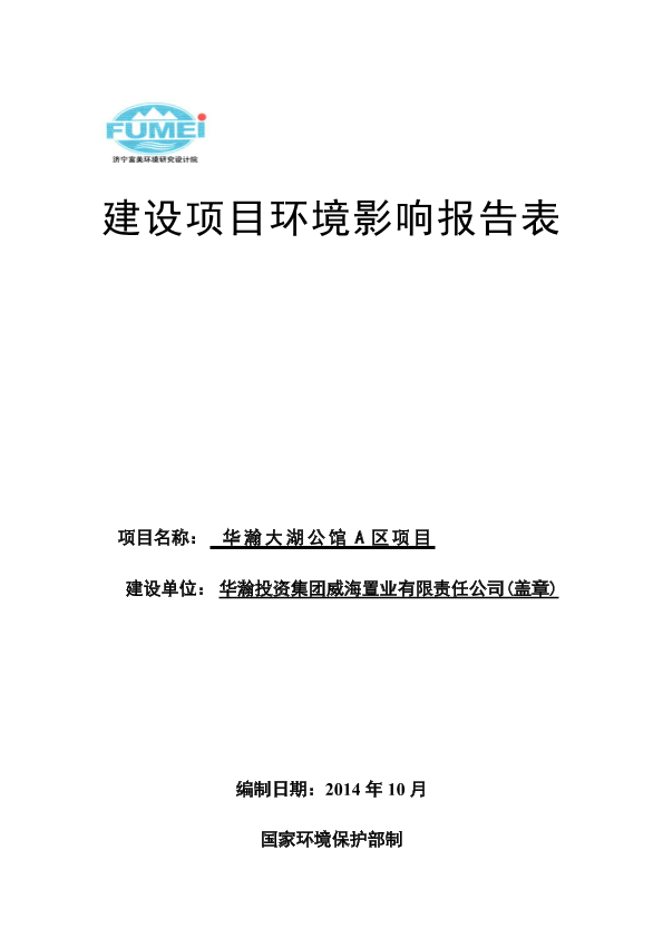 威海市环保局环翠分局关于华瀚投资集团威海置业有限责任公司大湖公馆a区建设项目环境影响评价文件受理情况的公示_1226534.pdf