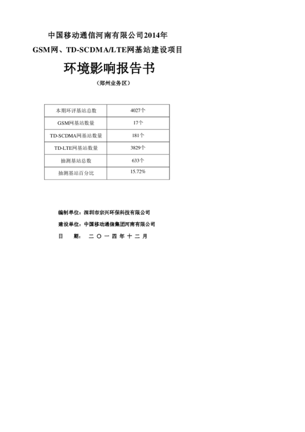 中国移动通信集团河南有限公司2014年gsm网、td-scdma_lte网基站建设项目(郑州分册)