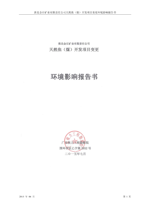 1、《淮北金石矿业有限责任公司天然焦(煤)开发项目变更环境影响报告书》全本公示760687797