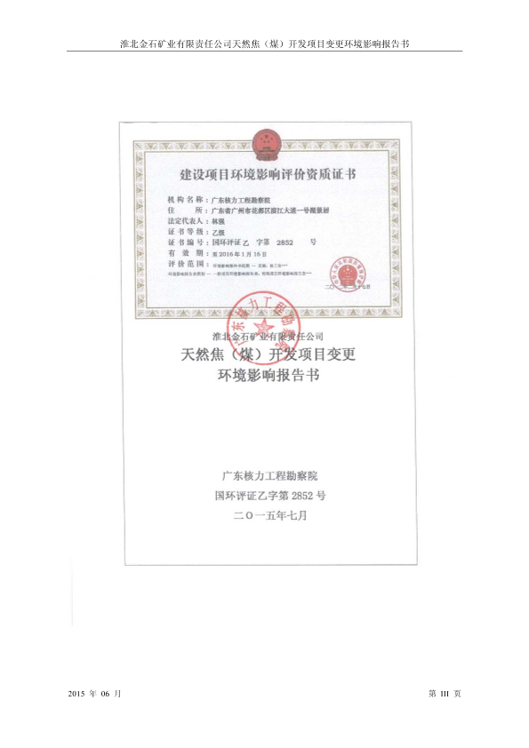 《淮北金石矿业有限责任公司天然焦(煤)开发项目变更环境影响报告书》受理公示a65826a4494